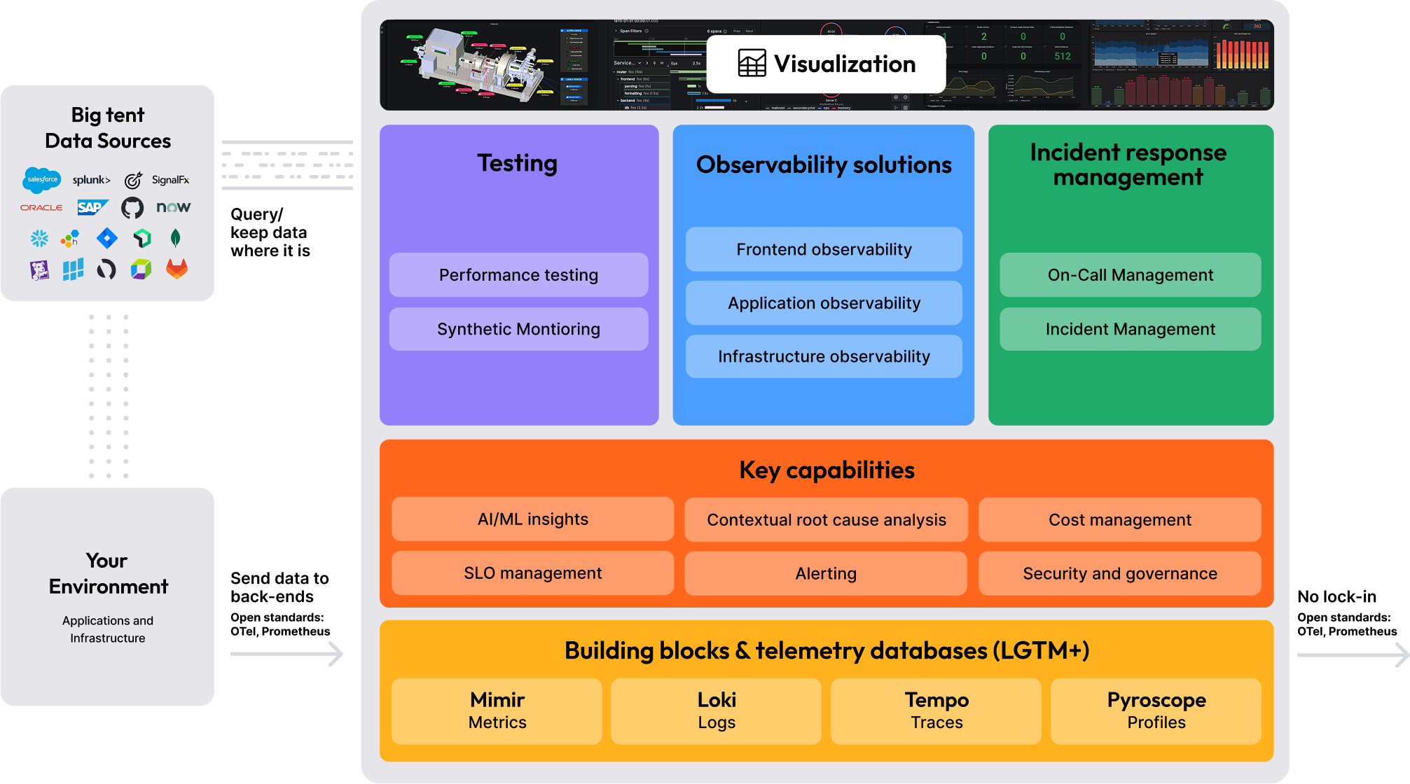 Grafana Federal Cloud is a fully managed, highly scalable observability platform, powered by Grafana Mimir for Prometheus metrics, Grafana Loki for logs, Grafana Tempo for traces, and Grafana, the de facto standard for data visualization.